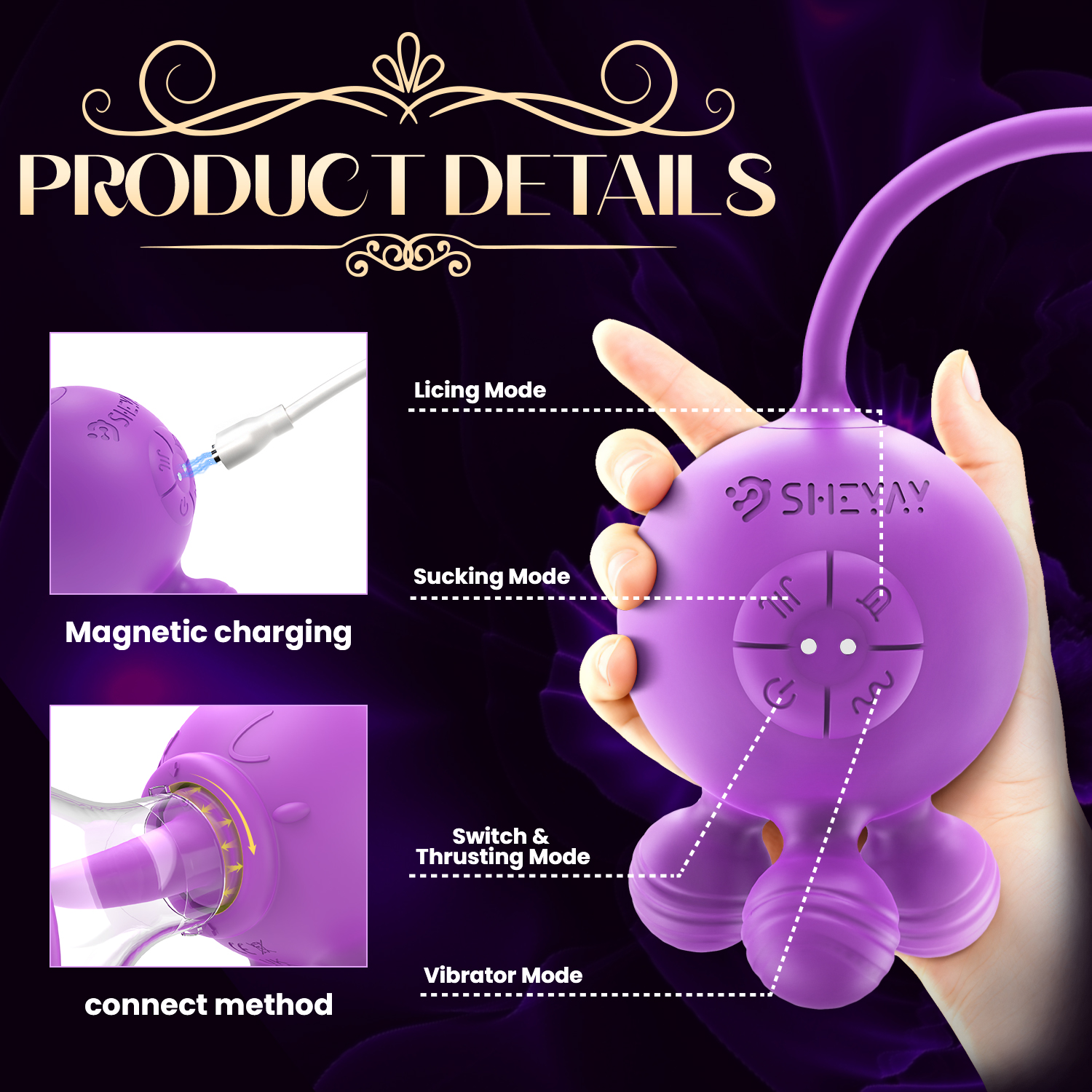 More than gentle touch—the suction mimics an octopus’s vacuum grip: steady, secure, and never stiff. Inside, a soft tongue moves in sync with the suction, adding flicks and strokes for layered, awakening pleasure.